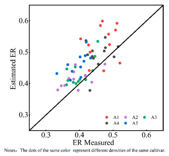 3.2. Comparison of EH and ER Estimation for Different Planting Densities