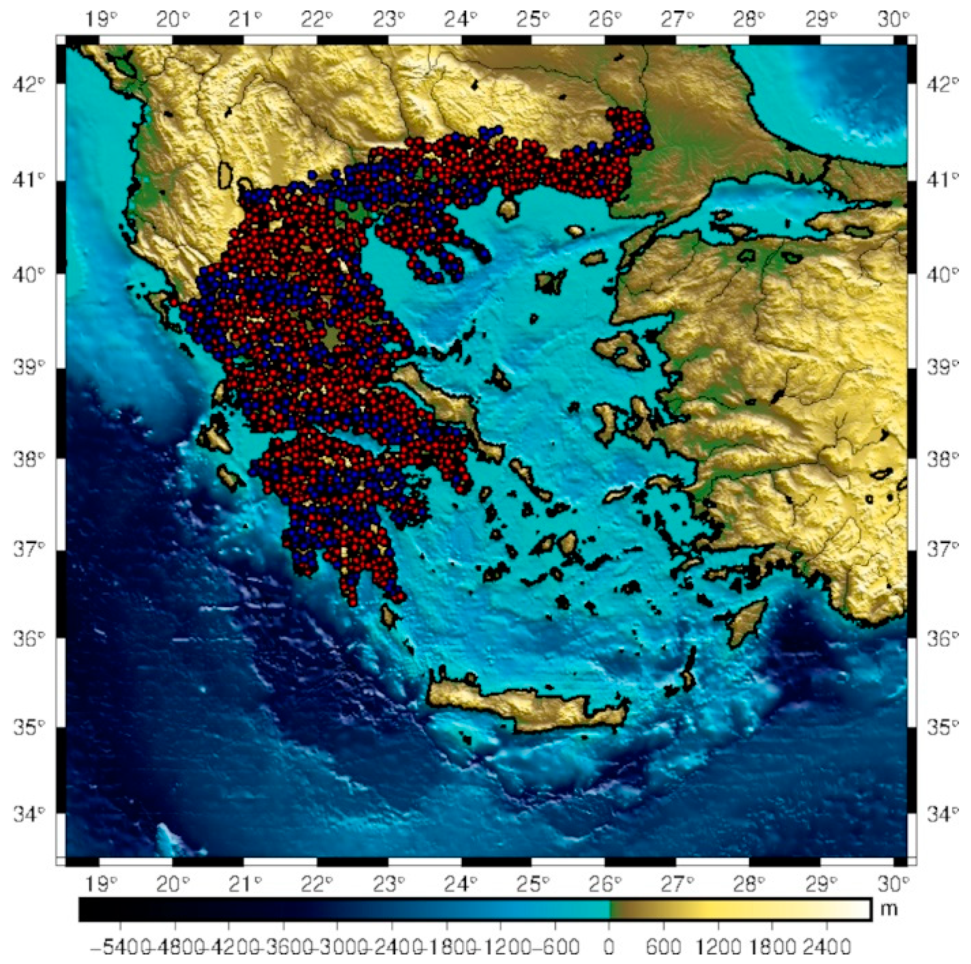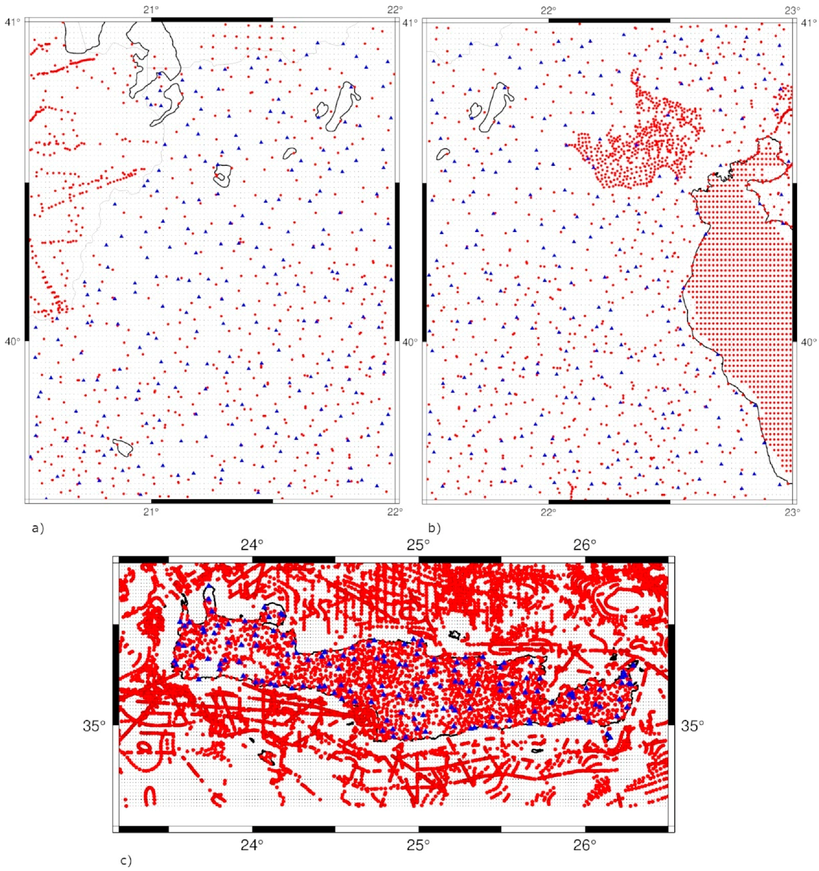 - Tziavos, I.N.; Andritsanos, V.D. Recent Geoid Computations for the Hellenic Area. Phys. Chem. Earth Part A Solid Earth Geod. 1999, 24, 91–96. [Google Scholar] [CrossRef]