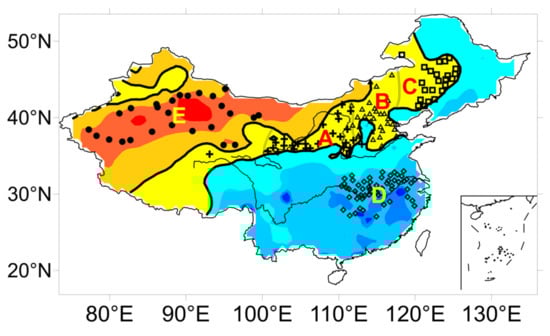 - Tang, X.; Qian, W.; Liang, P. Climatic features of boundary belt for East Asian summer monsoon. Plateau Meteor. 2006, 25, 375–381. [Google Scholar]