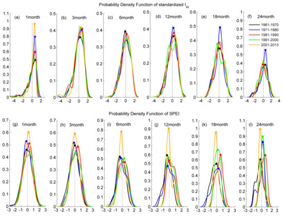 - Ma, J.; Xu, Y.; Pan, J. Drought tendency based on standardized precipitation index (SPl) and relative moisture index over Northeast China from May to September during 1961–2009. J. Meteor. Environ. 2012, 28, 90–95. [Google Scholar]