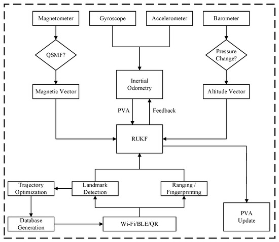 - Li, Y.; Zhuang, Y.; Zhang, P.; Lan, H.; Niu, X.; El-Sheimy, N. An improved inertial/wifi/magnetic fusion structure for indoor navigation. Inf. Fusion 2017, 34, 101–119. [Google Scholar] [CrossRef]