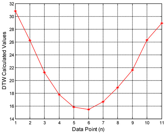 In order to improve the performance of the ground-marker category and reduce the influence of environmental factors, this work developed DTW matching using the calculated distances acquired from the Wi-Fi ranging and BLE RSSI. The real-time ranging results from Wi-Fi ranging and BLE RSSI are described as: