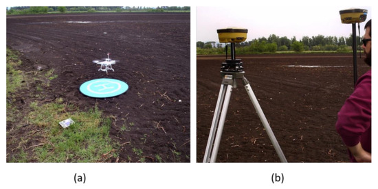 The UAS (a) that collected the RGB imagery and the RTK GPS (b) used to measure GCPs in this study.