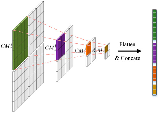 The input of this module is a multiscale feature map, , which first divides the features of different scales into N regions. The same regions of different scales have different sizes, but they are features of different levels of the same region of the input data. The features are flattened and then spliced to obtain the input .