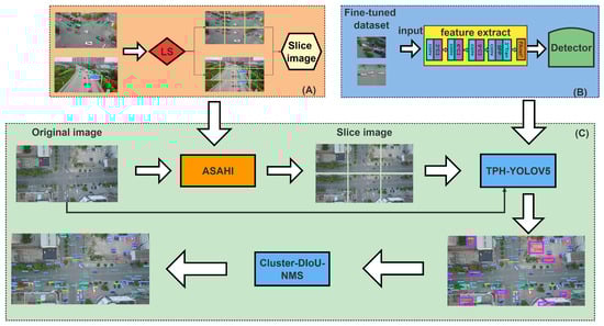 15]. We proposed a novel adaptive slicing framework, ASAHI, which slices images into a corresponding number of slices rather than using a fixed slice size. This substantially alleviates the problem of redundant computation. TPH-YOLOv5 [
