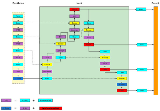 10] uses the architecture of CSPDarknet53, with three transformer encoder blocks as the backbone, PANet with CBAM [
