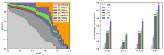 Figure 11, respectively. Among these results, C75 (IoU threshold of 0.75), C50 (IoU threshold of 0.5), Loc (ignore location error), Sim (ignore super-category false positives), Oth (ignore category confusions), BG (ignore all false positives), and FN (ignore all false negatives) in