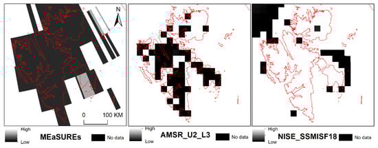 Passive microwave radiometer remote sensing images (MEaSUREs, AMSR_U2_L3, NISE_SSMISF18).