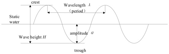 The particles of seawater vibrate periodically or quasi-periodically due to gravity near their equilibrium position or the static water. In Figure 1, the highest point and the lowest point are the crest and the trough, respectively, and the period between two consecutive crests is the wavelength . In addition to gravity, the particles of seawater are also driven by a variety of forces, such as wind, and their vibration is not completely periodic but has a certain dynamical characteristic.