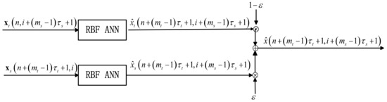 Because the radial basis function (RBF) based on ANN is good at dealing with small samples, it is adopted in this paper to learn the nonlinear and implicit function of serial data and , and its structure is shown in Figure 5. and are predicted by RBF ANN in the temporal and spatial domains, respectively, and then is jointly estimated in the spatiotemporal domain.