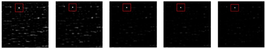 Generally, the differential image might be subordinated to Gaussian white noise, and the target could be detected with a higher probability by the criterion of the constant false alarm rate (CFAR). In addition, the trajectory of the target is continuous and consistent, and it appears in the neighboring region at consecutive images with maximum probability since it moves continuously. Therefore, the target would be declared by M/N logic, that is, if there are more than M measurement values in N consecutive images, the measurement value is assumed to be a potential target; otherwise, it is a false alarm.