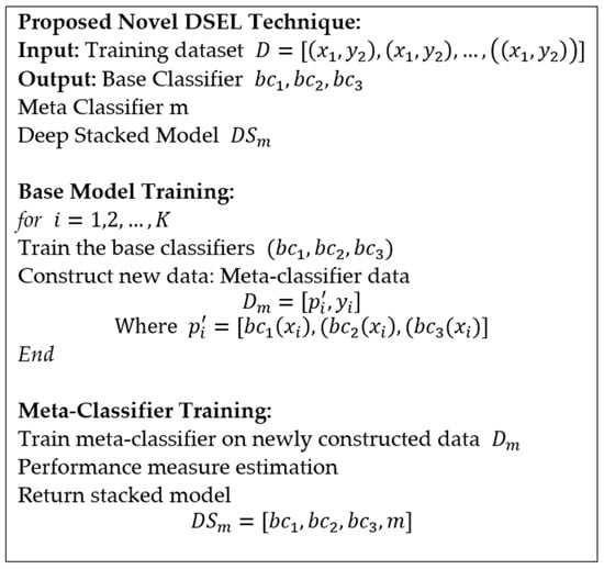For the practical development of the DSEL algorithm for fault detection strategy, the architecture of base learners (DNN, LSTM, and Bi-LSTM) and meta-learner model (MLR) are briefly explained in the following section. Figure 9 illustrates a pseudocode for the proposed DSEL approach.