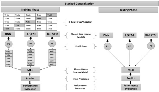 Another ensemble learning (EL) method developed by Wolpert is stacking or stacked generalization, which has been extensively applied in numerous domains since its inception [40]. Stacking combines the outcomes of multiple base learner models required to train a new meta-learner model for the output result. The fundamental idea of stacking is built on two stages of algorithms. The first stage includes several base learner algorithms, while the second contains the meta-learner algorithm.