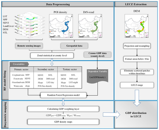 Li, F.; Mao, L.; Chen, Q.; Yang, X. Refined Estimation of Potential GDP Exposure in Low-Elevation Coastal Zones (LECZ) of China Based on Multi-Source Data and Random Forest. Remote Sens. 2023, 15, 1285. https://doi.org/10.3390/rs15051285