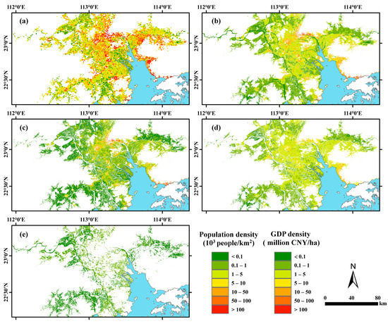 - Ribeiro, H.V.; Oehlers, M.; Moreno-Monroy, A.I.; Kropp, J.P.; Rybski, D. Association between population distribution and urban GDP scaling. PLoS ONE 2021, 16, e0245771. [Google Scholar] [CrossRef] [PubMed]