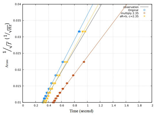 where is the dispersion of the lightning whistler and is the time of the lightning strike. Thus, the spectral form of the lightning whistler is shown in Figure 2a. When the dynamic power spectra are graphed with on the horizontal axis and on the vertical axis, as shown in Figure 2b, dispersion is determined by a straight line and calculated using the following equation: