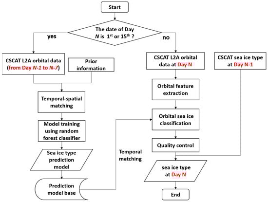 The flowchart of sea ice classification based on the machine learning approach with CSCAT measurement.