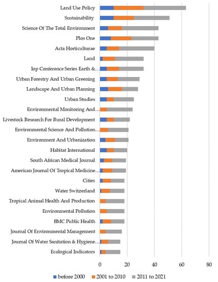 The top 25 Scopus-indexed journals and their number of articles on peri-urban research.
