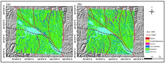 Landslides are a disaster phenomenon in which the geotechnical body on a slope slides downward along the damaged penetrating surface, as well as slopes characterized by an unstable state that may evolve into a landslide disaster [1]. The route of the Sichuan–Tibet Railway (STR) is mostly located in mountain and valley areas, with complex geological structures and strong neotectonic movement. A series of unstable slopes and high-altitude frozen soil areas are formed under the coupling effect of internal and external dynamics [2,3]. Diverse types of geological hazards have increased the difficulty of STR construction and operation [4,5]. Therefore, identifying the unstable slopes and seasonal frozen soil in this region is of great significance, as well as investigating the development patterns associated with unstable slopes and seasonal frozen soil. This will ensure the safety of major engineering constructions, human life, and property in this region.