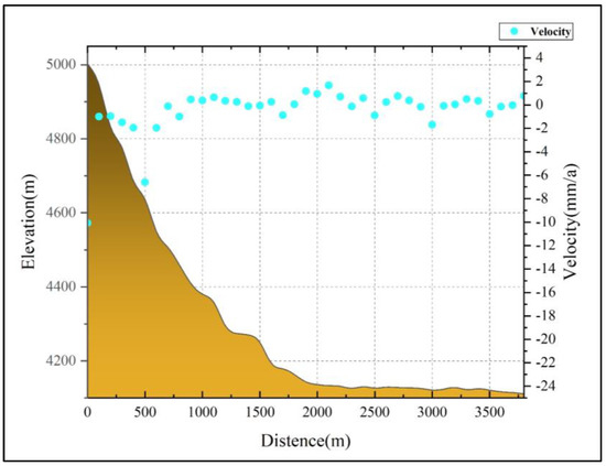 Elevation and velocity diagram of the slope along the C1–C2 profile in Figure 9.