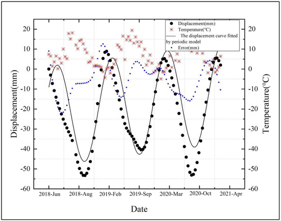 In this study, a periodic subsidence and uplift model based on time variation was used to model the time-series monitoring results and identify the seasonal frozen soil area in the study area. The model assumes that the periodic subsidence and uplift of the frozen soil is a sinusoidal function: