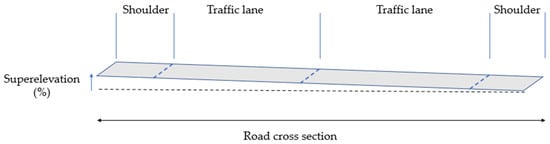 This section focuses on computing the road parameters: road width, superelevation, lanes width, lanes number, road shoulders width, and barriers heights (Figure 9).