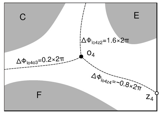 For example, we calculated the residue value at region corner in the bottom right of Figure 2, and the phase difference values on the boundaries are noted in Figure 3. The calculation is as follows: