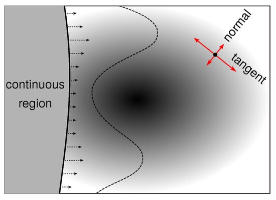 - Corner continuity distance calculation: In order to improve the efficiency of corner continuity distance calculation, we utilized a parallel implementation of the fast march method (FMM) [34,35]. The positive and negative continuity distance of each corner point is determined through the examination of the discontinuity cost of boundaries and the distribution of region residues. The calculation is performed using known , in accordance with the following equation:where represents the discontinuity cost on boundary l and refers to the corner neighborhood of corner i.