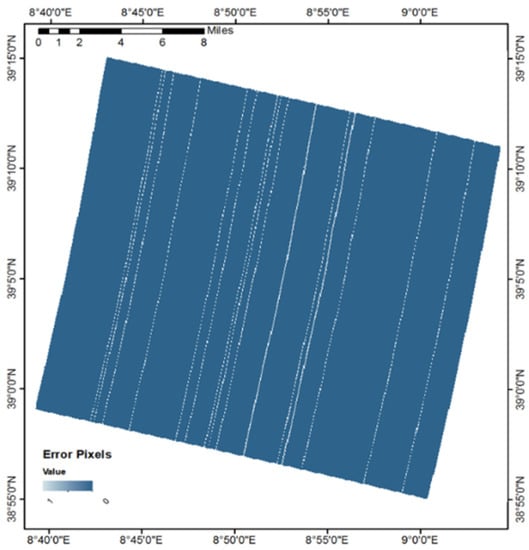 To automate data processing for a complete region, high computation power is required. Virtual machines, such as the EarthConsole G-BOX [71] provided by European Space Agency (ESA), can be accessed to process this hyperspectral imagery. Hyperspectral data have unstable, noisy bands in the hypercube. PRISMA data have dead/noisy lines on some of the bands in the hypercube, as illustrated in Figure 4. A procedure for removing the dead and noisy lines using linear/nonlinear interpolation is described in [1]. According to the literature, most of the applications apply some machine/deep learning techniques to predict the required parameters using PRISMA. Data regarding the desired region of interest are required to train artificial intelligence techniques. However, data are often scarce, which is a major weakness of data processing [72].