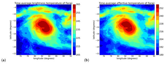 Comparison between the brightness temperature (a) and the effective temperature (b) of the Faraji cyclone.