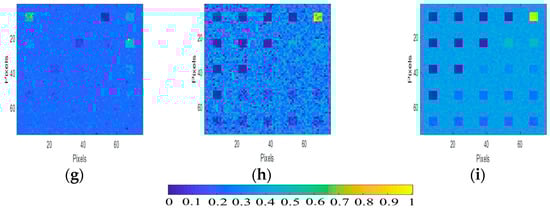 Figure 1 takes endmember 5 as an example; it shows the results of eight unmixing methods. It is the estimated abundance maps of endmember 5 obtained when the SNR is 20 dB noisy data. From Figure 1a–i there are the Reference image, FCLSU, FRAC, SUnSAL-TV, GLNMF, NMF-QMV, the graph Laplacian, the gtvMBO, and E-gtvMBO algorithms, respectively. By observing Figure 1, we can know that the colors of SUnSAL-TV and GLNMF backgrounds are different compared to other methods. The background of the graph obtained by the NMF-QMV method has a lot of noise, and the result of GraphL loses many recognizable objects. The gtvMBO method can clearly identify the identifiable object of the endmember 5, but its background still has a lot of noise. Compared to other methods, the E-gtvMBO method implements the identifiable balance between object and background noise. Therefore, from Figure 1b–g, we can find that Figure 1g is closest to the reference image in Figure 1a. This can qualitatively illustrate the strengths of the E-gtvMBO method compared to several other methods.