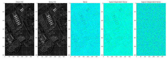 In Figure 7, the behavior of both different kinds of noise is observed, where a specific case of Pavia University is displayed. The SD noise is clearly more present in the high-reflectance pixels. On the other hand, the SI noise is uniformly distributed along the spatial domain.