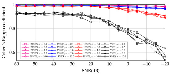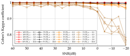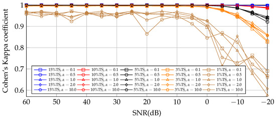 | 20 dB | 0.8961 ± 0.0016 | 0.8892 ± 0.0017 | 0.9039 ± 0.0026 | 0.9995 ± 0.0003 | 0.9999 ± 0.0001 | |