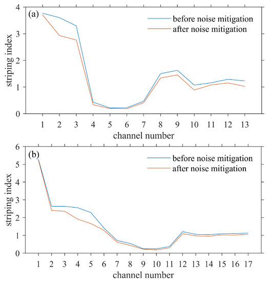 Striping index of each channel of (a) MWTS-2 and (b) MWTS-3.
