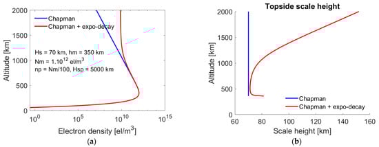 11]) show that the topside ionosphere–plasmasphere scale height increases nearly linearly with the altitude. Considering this, a vary-Chapman function is often used for topside ionosphere–plasmasphere modelling. The vary-Chapman function uses a Chapman layer with a variable scale height. However, here we have modelled the topside ionosphere–plasmasphere by a Chapman layer superposed by an exponential decay function. As