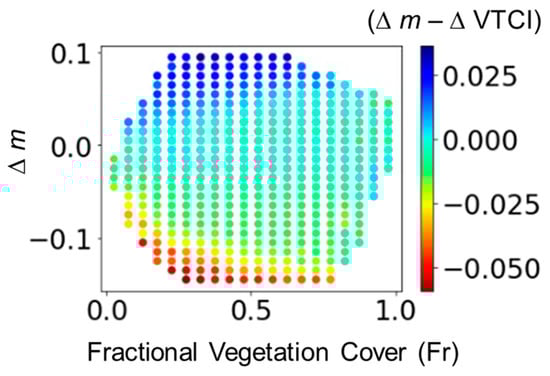 Fuel moisture difference between FFMC and VTCI in ∆m—fractional vegetation cover data space.