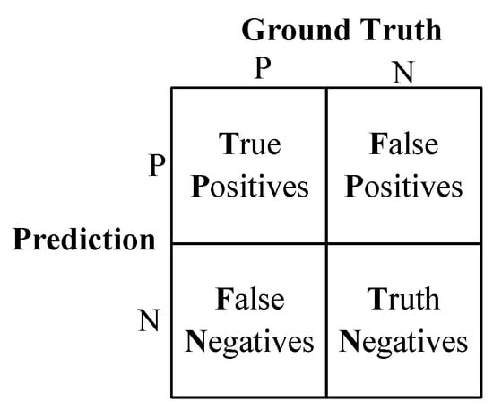 There are many indicators used to evaluate the recognition algorithm, and the calculations of these indicators are based on the confusion matrix. Thus, we introduce the confusion matrix firstly, as shown in Figure 5.