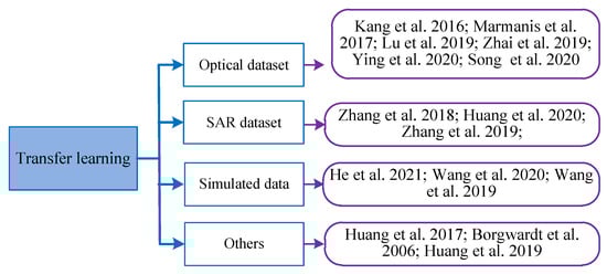 We can find that the above SAR datasets are very small when compared with optical datasets. Thus, many researchers try to solve the problem raised by limited samples, and the methods are shown in Section 5.3.