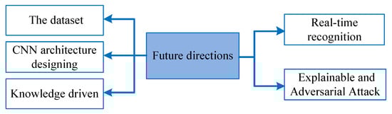 Since the success of AlexNet in ILSVRC (ImageNet Large Scale Visual Recognition Challenge), the key to image classification has turned from feature designing to CNN designing. Many CNNs, such as VGGNet [30], Inception [31], ResNet [32], ResNeXt [33] and DenseNet, have been proposed [34]. Similarly, due to the huge advantages of CNN, it is also used in SAR ATR and shows good performance. Furthermore, many papers have emerged. This paper summarizes mainly the deep-learning-based SAR ATR algorithm, including mainly its eight aspects, as shown in Figure 8.