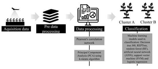 Santana, D.C.; Teixeira Filho, M.C.M.; da Silva, M.R.; Chagas, P.H.M.d.; de Oliveira, J.L.G.; Baio, F.H.R.; Campos, C.N.S.; Teodoro, L.P.R.; da Silva Junior, C.A.; Teodoro, P.E.; et al. Machine Learning in the Classification of Soybean Genotypes for Primary Macronutrients’ Content Using UAV–Multispectral Sensor. Remote Sens. 2023, 15, 1457. https://doi.org/10.3390/rs15051457