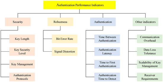 The authentication performance evaluation results represent the service performance of the BDS authentication service. It is necessary to build a complete authentication performance indicator system to comprehensively represent the security, robustness, authentication, and other performances of the authentication service. The authentication performance indicators are shown in Figure 14.