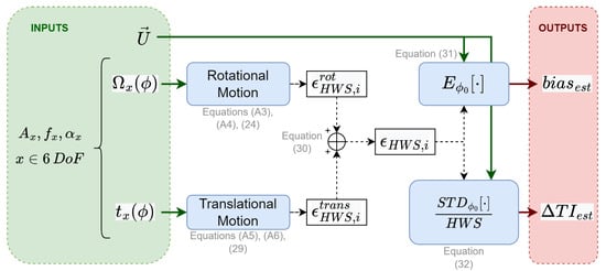 In order to simplify the obtained analytical expressions, the following assumptions are considered: (i) the motion in each of the six DoF is considered to be a zero-mean simple harmonic motion; (ii) the rotational and translational motions are considered to be independent error sources; and (iii) under motion, the contribution to the error is considered to be null as compared to the contribution [].
