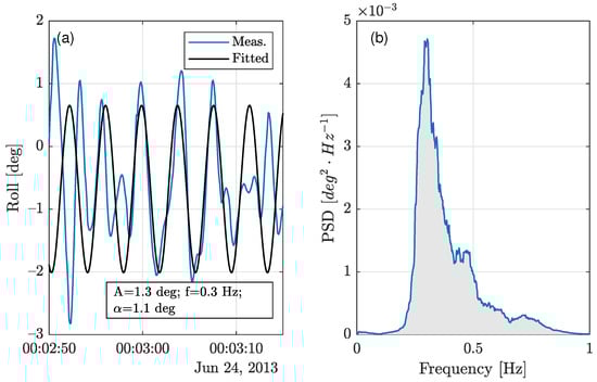 where , , and , are the amplitude, frequency, and phase of the translational motion x, where x denotes the surge, sway, or heave components. We also defined the translational-velocity vector in the NED fixed coordinate system as the three-component vector,