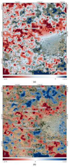 where represents the residual orbit error caused by an inaccurate orbit sensor; is related to the topographic variation enhanced with physical features of the ground surface; is the unwrapping error and the main algorithm process applied to recovering an unambiguous phase and correcting the residual phases (, , and ) for accurate high deformation results; is the residual thermal noise effect; and is the atmospheric errors during SAR image acquisition that are influenced by various signals. It is the main artifact source and is generated when the microwave passes through the tropospheric layer (i.e., elevation component due to atmospheric vertical stratification, and turbulent component referring to horizontal changes in water vapor distribution over short time intervals) [11,18].