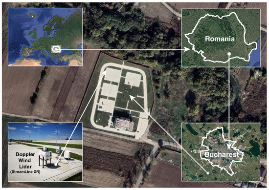 StreamLine XR Doppler wind lidar located at the Măgurele Center for Atmosphere and Radiation Studies (MARS), Măgurele, Romania. Based on Google Maps (map data: Google, Maxar Technologies) processed on QGIS [33].