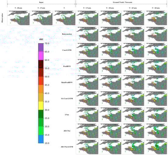 - Ayzel, G.; Heistermann, M.; Sorokin, A.; Nikitin, O.; Lukyanova, O. All convolutional neural networks for radar-based precipitation nowcasting. Procedia Comput. Sci. 2019, 150, 186–192. [Google Scholar] [CrossRef]