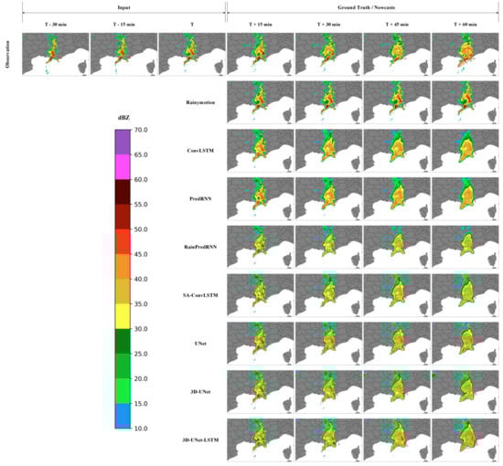 - Shi, X.; Chen, Z.; Wang, H.; Yeung, D.-Y.; Wong, W.-K.; Woo, W.-c. Convolutional LSTM network: A machine learning approach for precipitation nowcasting. In Proceedings of the Advances in Neural Information Processing Systems, Montreal, QC, Canada, 7–12 December 2015; pp. 802–810. [Google Scholar]