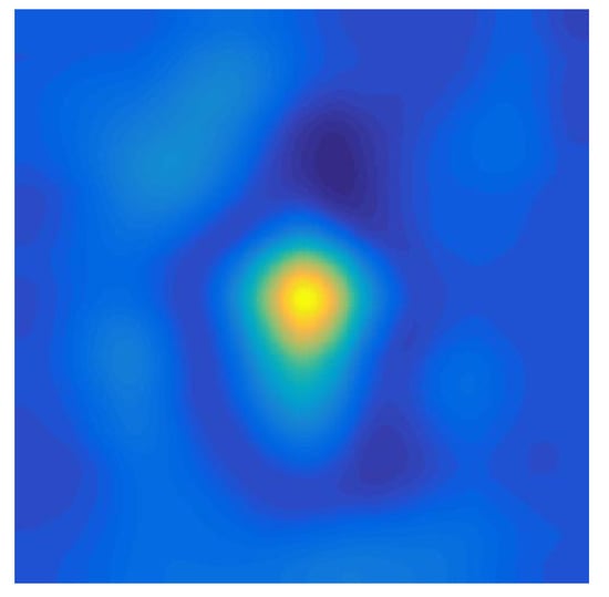 Additionally, to limit the range of the fused response map, and are normalized to and . Finally, the fused response map is calculated using and , and the fused result of the two response maps is shown in Figure 6.