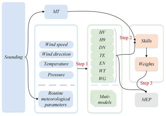 Process of MEP. Abbreviation meanings are as follows after this. MT: micro-thermal; HV: Hufnagel-Valley 5/7; H9: Hmnsp99; DN: Dewan; TE: Thorpe; EN: Ellison; WT: WSPT; WG: WSTG; MEP or ME: multi-model ensemble pattern method.