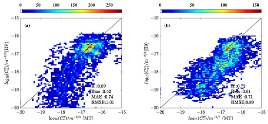Figure 3a,b displays MT and estimations profiles from the ECACN radiosonde campaign. The overall trends of estimations are consistent with MT. The magnitude of estimations and MT are mainly distributed in the range of . Distinct differences can also be seen between different estimations. HV has a very high correlation with MT within the troposphere. However, it underestimates significantly above approximately 20 km, which indicates that a more turbulent and complex atmospheric state might exist above the troposphere in this area. TE, EN, and WT have better performance in magnitude owing to the calibration of unknown proportionality constants according to MT measurements. H9, DN, and WG have a similar trend in the overall trend, while these estimations fluctuate a little bit more around the mean value against TE, EN, WT, and ME. By combining the corresponding Taylor diagrams in Figure 3c,d, we can also easily find that the values of normalized standard deviations of HV, H9, DE, and WG are much bigger than MT most of the time. Meanwhile, closer normalized standard deviation values to 1 (or MT) of TE, EN, and ME means that these approaches have similar behavior in fluctuation magnitude. In addition, ME also shows its advantage in correlation evaluation. Among all 16 launches, correlation coefficients between ME and MT are mainly distributed around 0.6–0.8 and the best one is up to approximately 0.9.